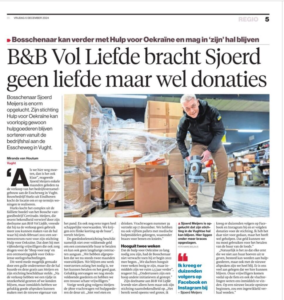 Vandaag verscheen in het Brabants Dagblad een artikel over de recente huisvestingsonzekerheid van Stichting Hulp voor Oekraïne. Het hele artikel lees je in Brabants Dagblad